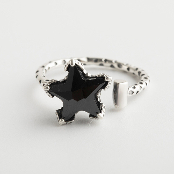 s925 sterling silver black agate imitation unique adjustable silver ring