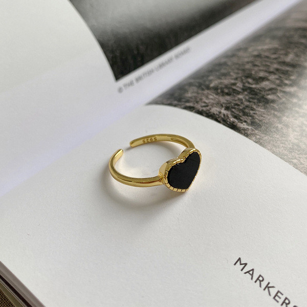 925 sterling silver black heart ring