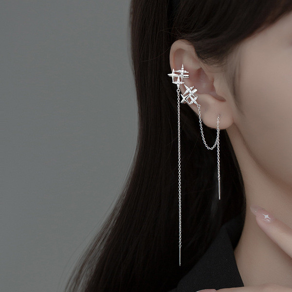 s925 sterling silver triangle string simple hollowed long geometri earrings