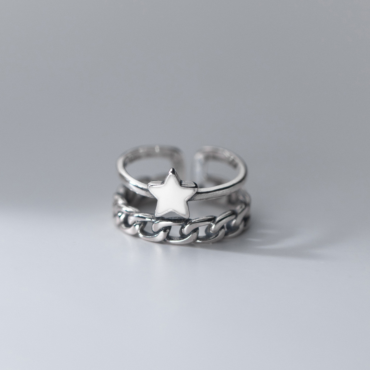 s925 sterling silver trendy multilayer adjustable laye simple ring