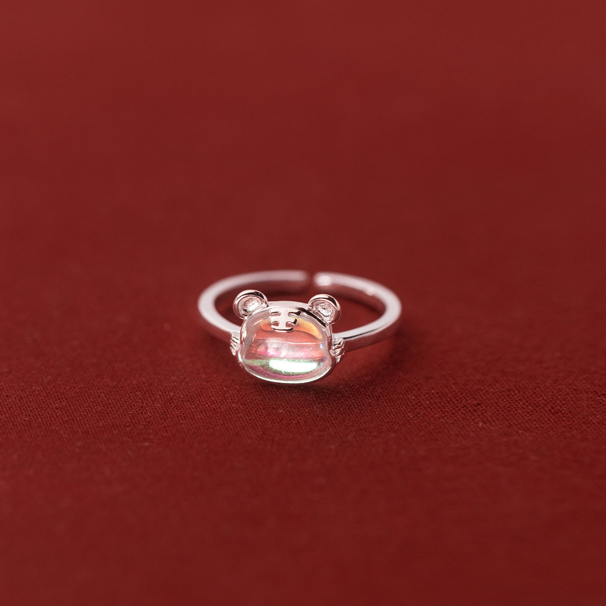 s925 sterling silver black agate imitation unique adjustable silver ring