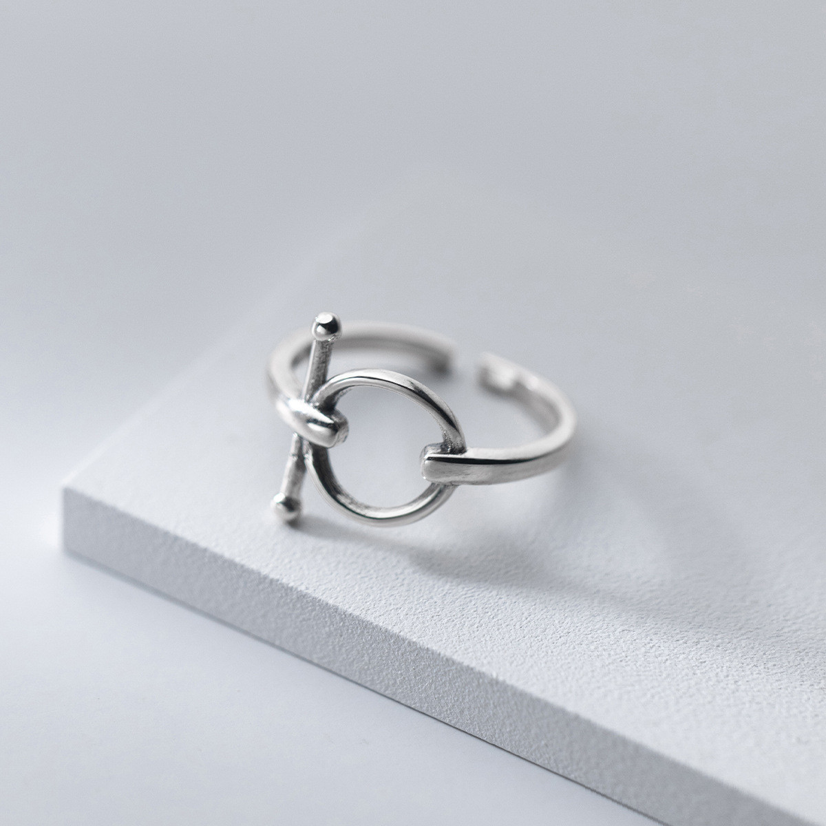 s925 sterling silver geometric bar silver hollowed simple fashion ring