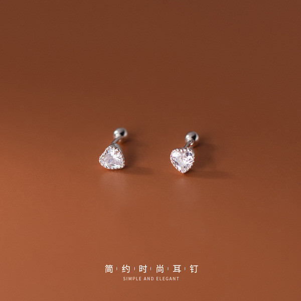 s925 sterling silver simple rhinestone heart asymmetric earrings