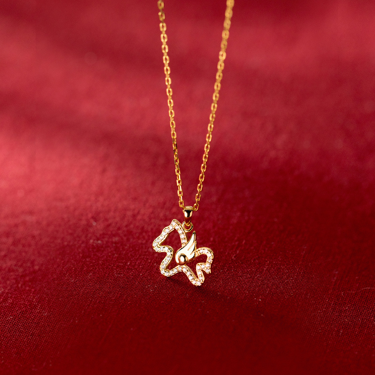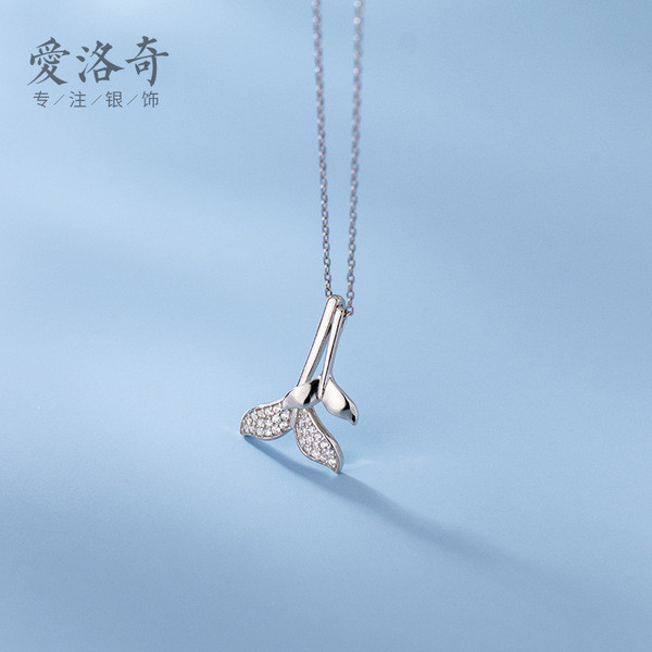 s925 sterling silver cute rhinestone dolphin hollowed necklace