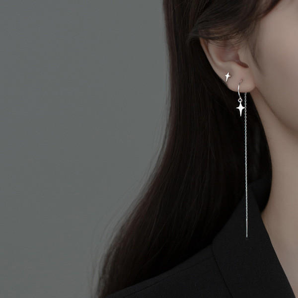 s925 sterling silver string simple trendy chic silver tassel chic earrings