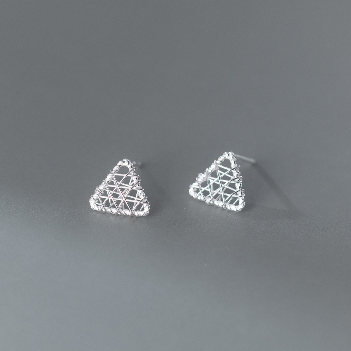 s925 sterling silver fashion simple trendy hollowed rhinestone triangle chic earrings