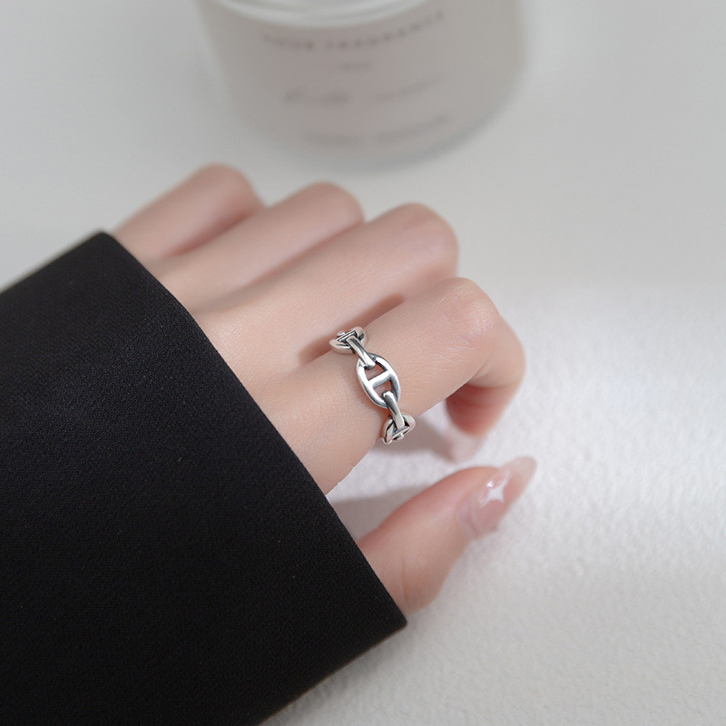 s925 sterling silver circle wide adjustable chic geometri ring