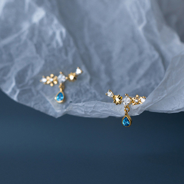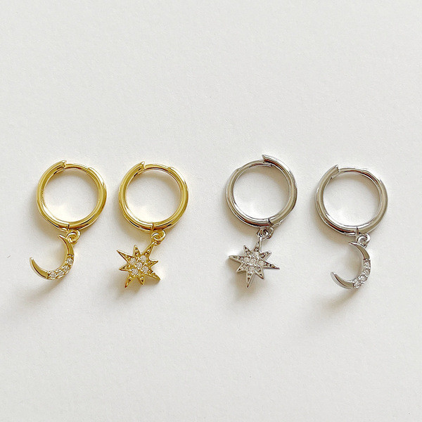 s925 sterling silver minimalist rhombic rhinestone hoop silver earrings