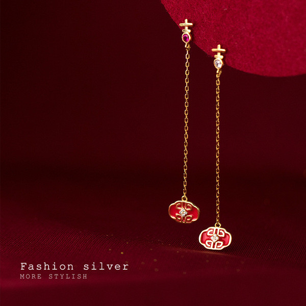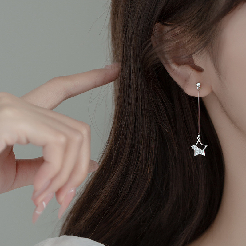 s925 sterling silver chain string small trendy simple fashion chain earrings