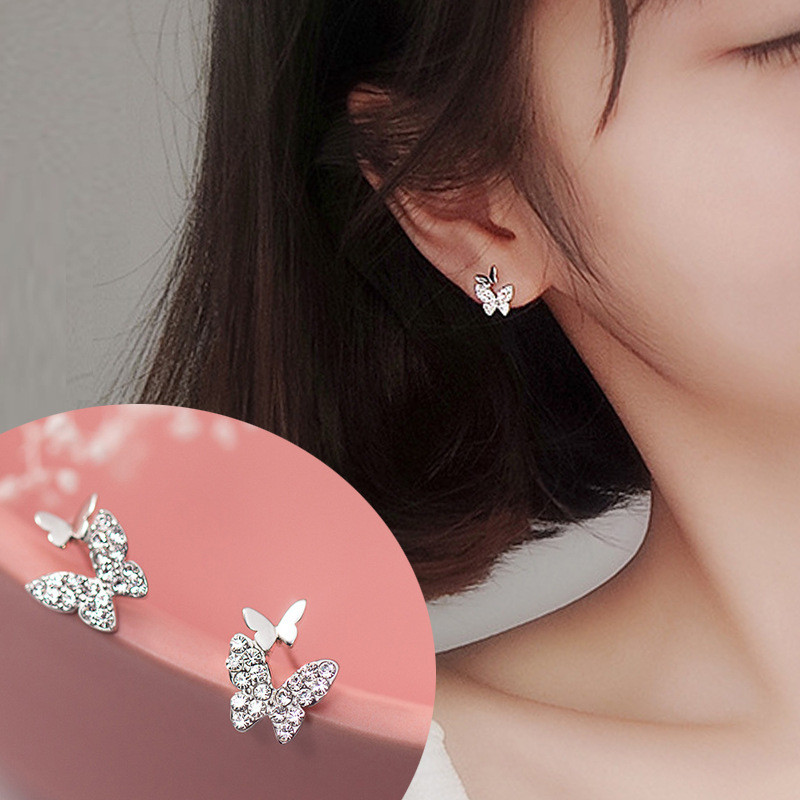 s925 sterling silver hollowed cute wing rhinestone sweet earrings