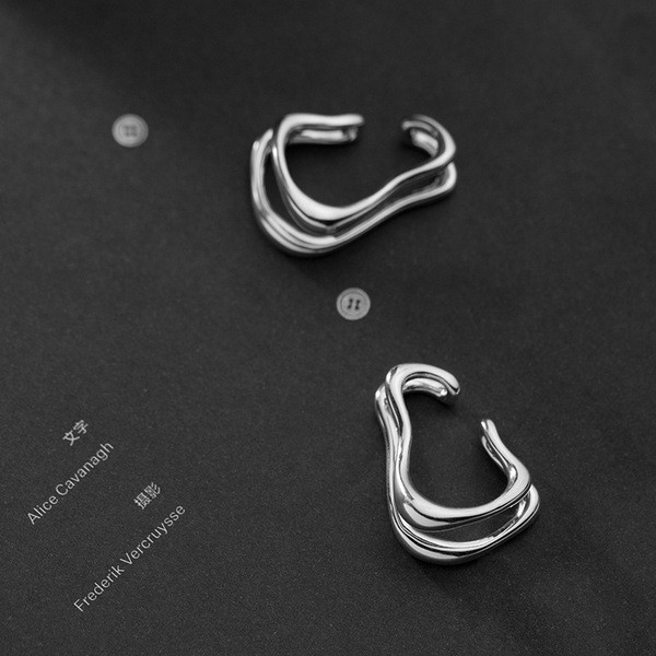 unique irregular hollowed qualitys925 sterling silver piercing clipon earrings