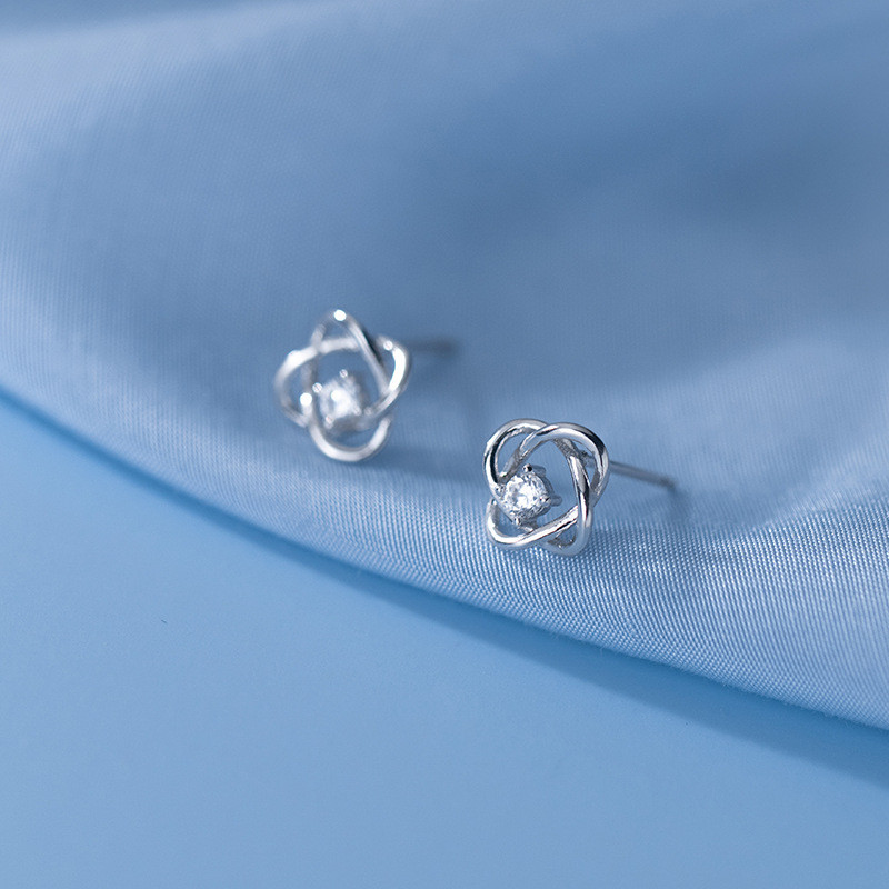 s925 sterling silver simple piercing clipon cute rhinestone twist earrings