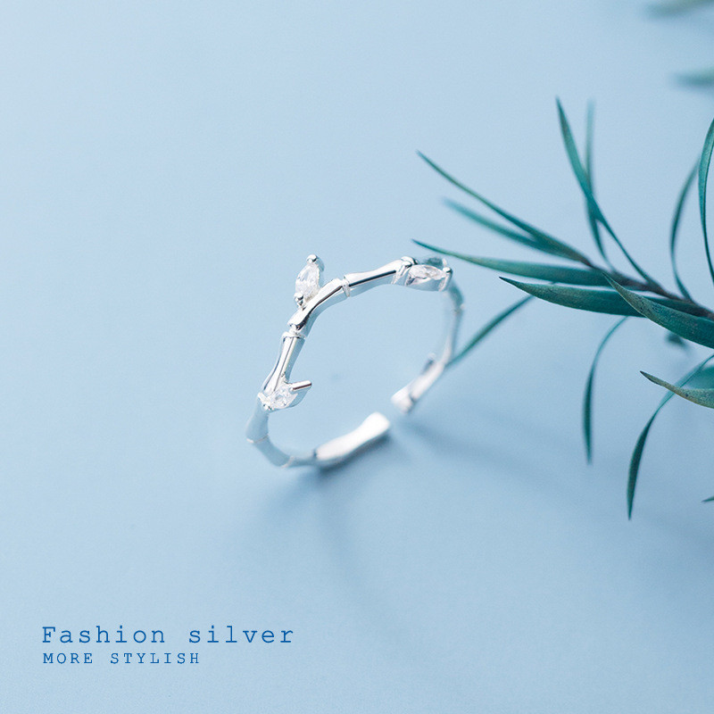 s925 sterling silver chic sweet trendy rhinestone simple fashion leaf ring