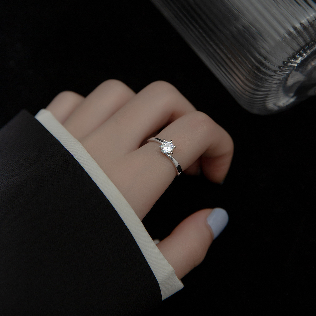 s925 sterling silver fashion rhinestone ring