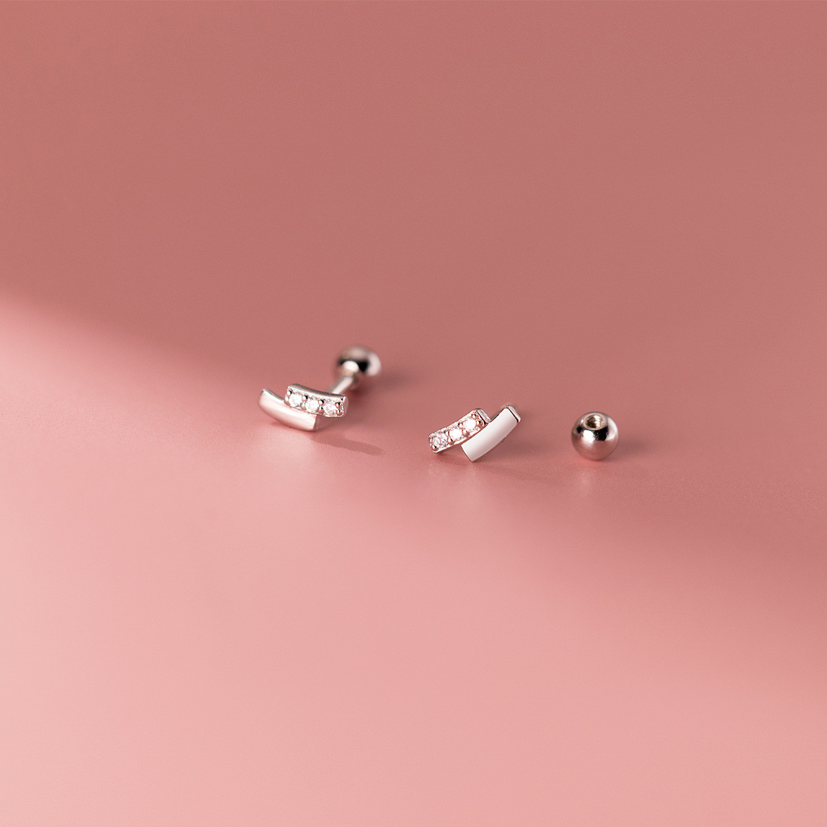 s925 sterling silver cubiczirconia hollowed bow earrings