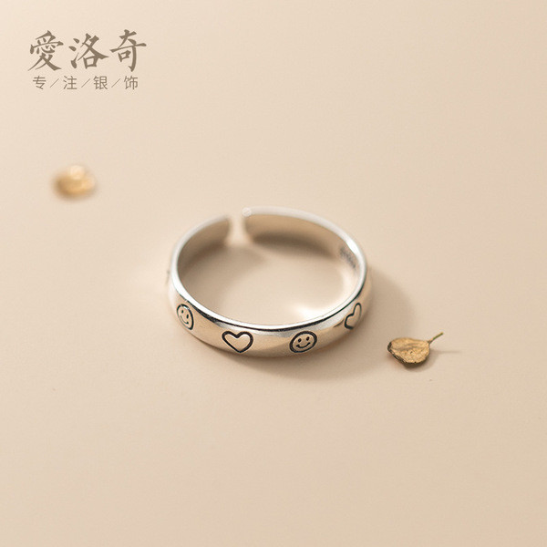 s925 sterling silver unique silver doublelayer smilingface expression ring