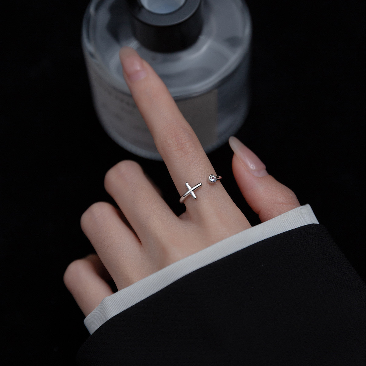 s925 sterling silver chic bar rhinestone adjustable ring