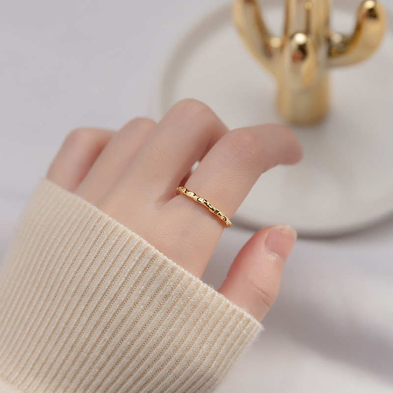 s925 sterling silver geometric bar silver hollowed simple fashion ring