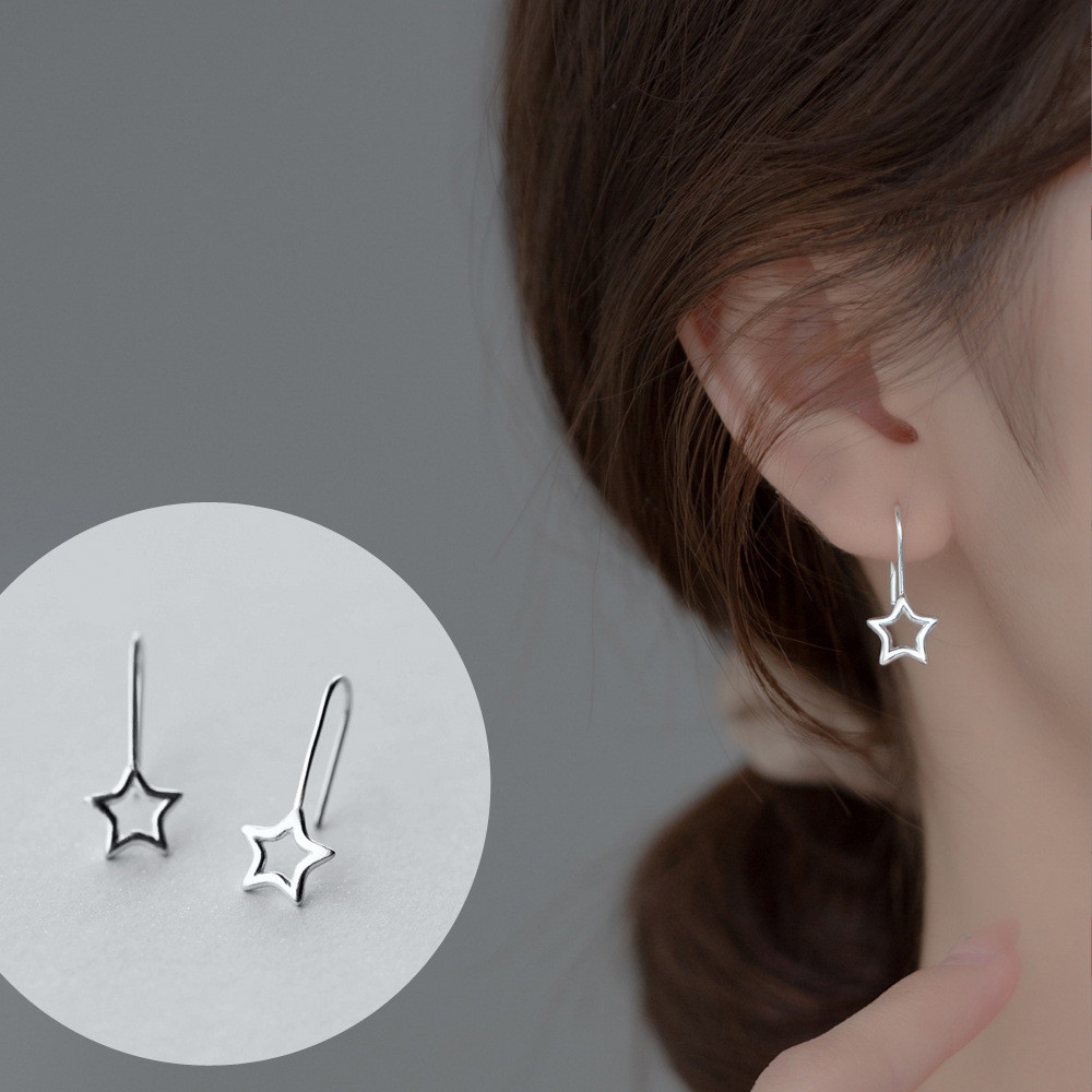 s925 sterling silver silver initial star earrings