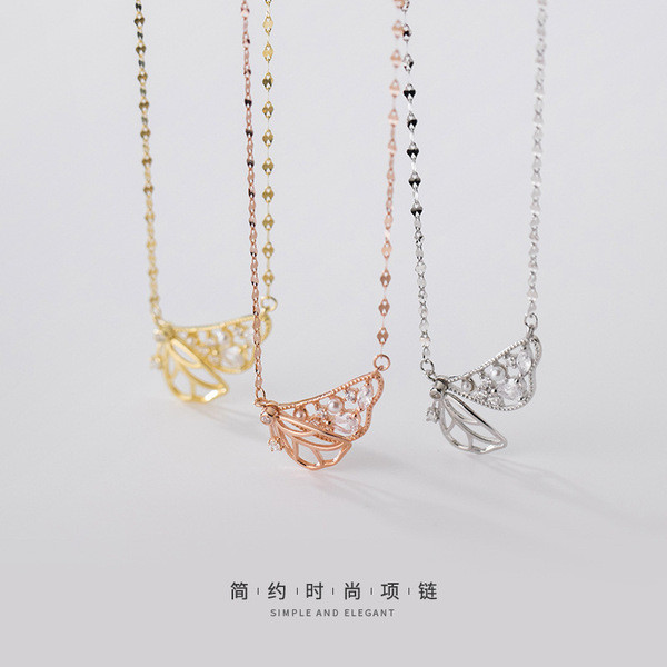 s925 sterling silver hollowed rhinestone necklace
