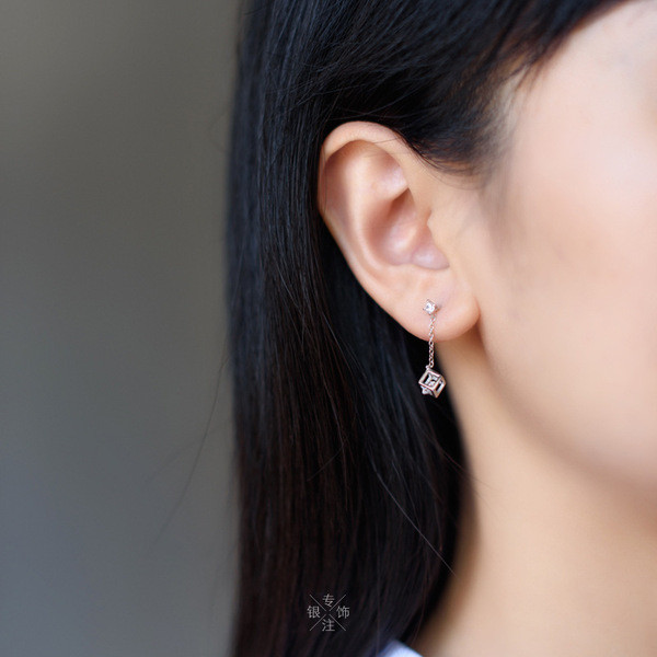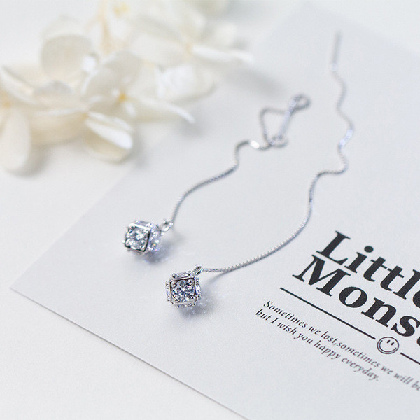 s925 sterling silver string sweet sparkling square dangleearrings