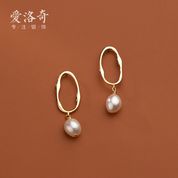 s925 sterling silver freshwaterpearl hoop circle geometric earrings