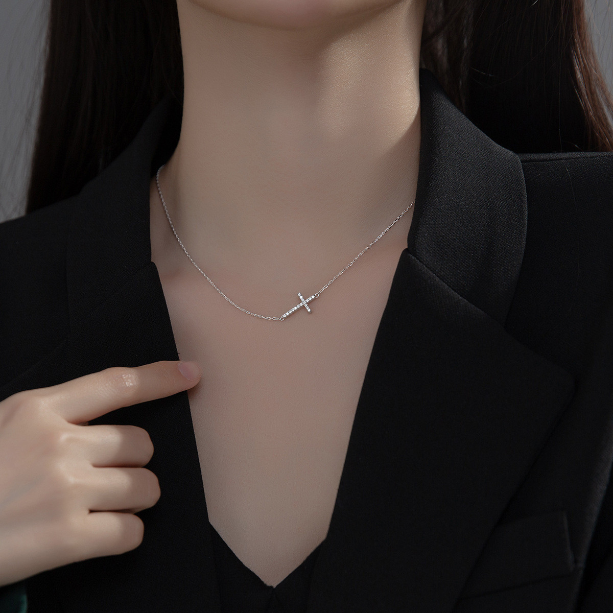 chic bead cros s925 sterling silver necklace