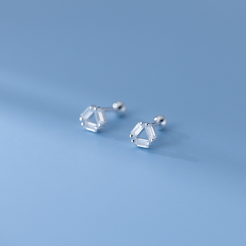 s925 sterling silver black hexagon simple geometric earrings