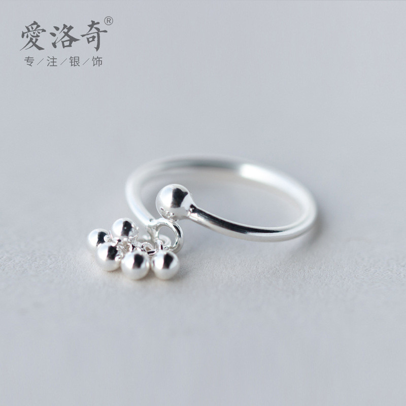 s925 sterling silver beaded simple trendy adjustable ring