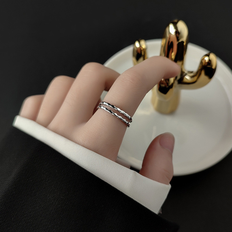 925 sterling silver doublelayer weave adjustable ring