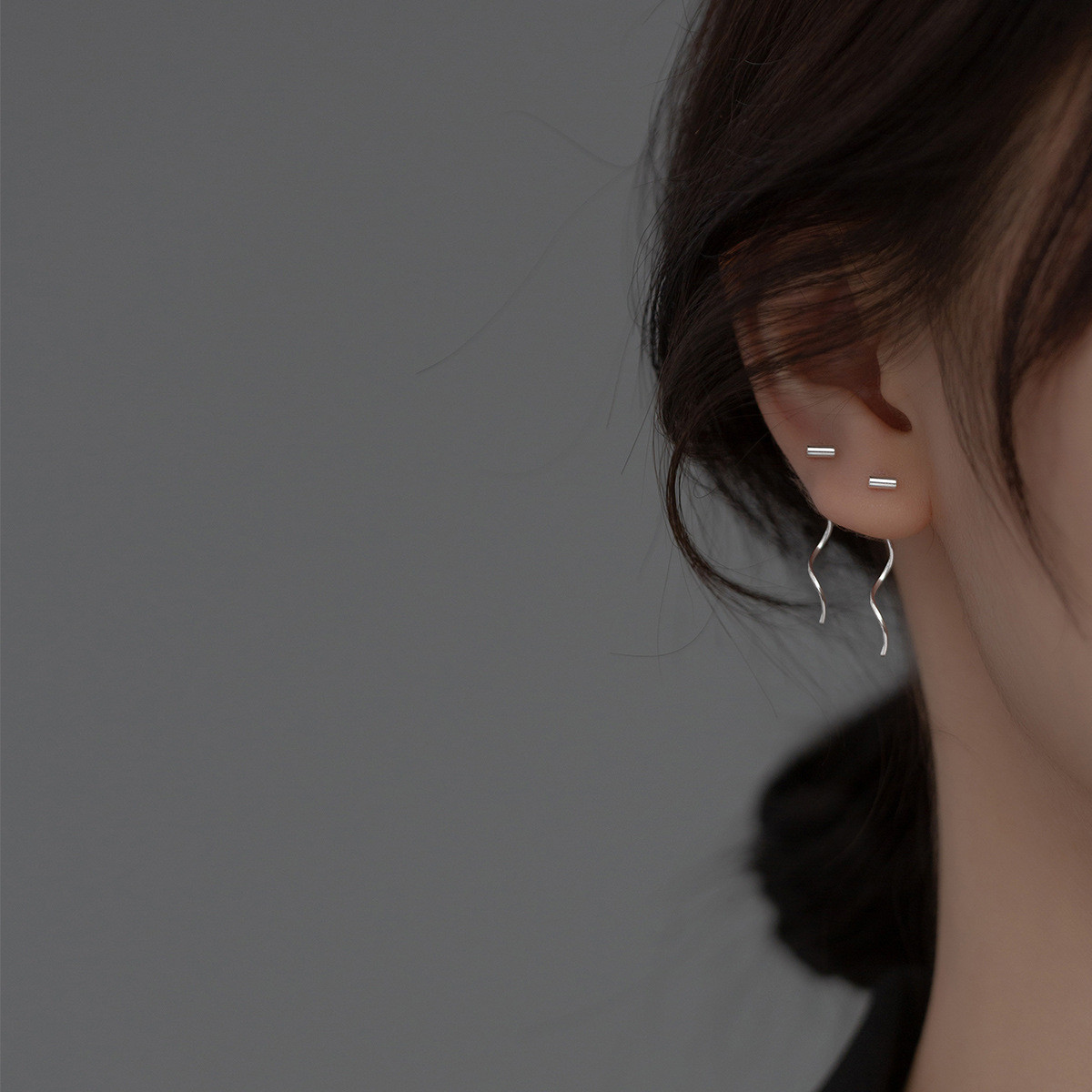 s925 sterling silver asymmetric hollowed screw cute cute earrings