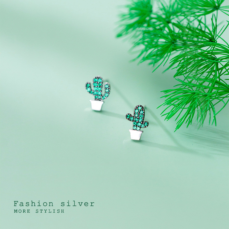 s925 sterling silver cute piercing rhinestone leaf earrings