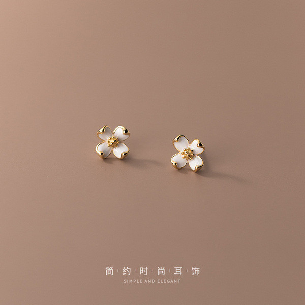 s925 sterling silver simple trendy rhinestone hollowed leaf cute earrings