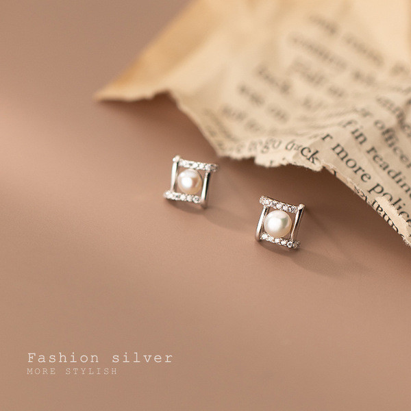 s925 sterling silver simple fashion rhinestone earrings
