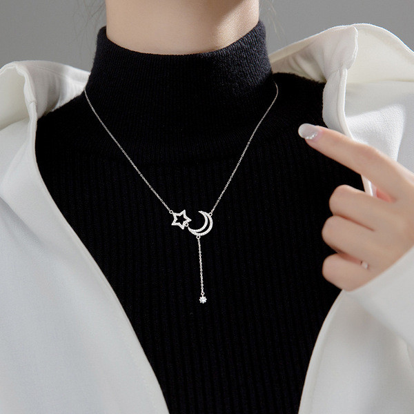 s925 sterling silver hollowed teardrop rhinestone necklace