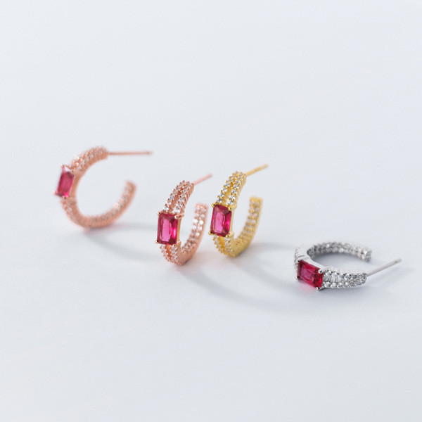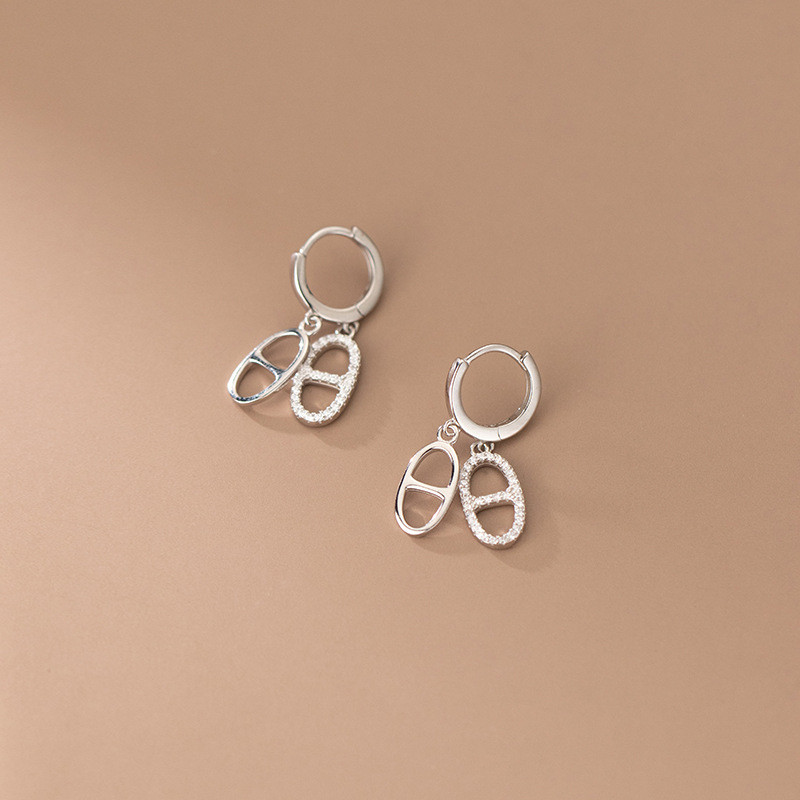 s925 sterling silver simple rhinestone circle geometric hollowed rhinestone chic earrings