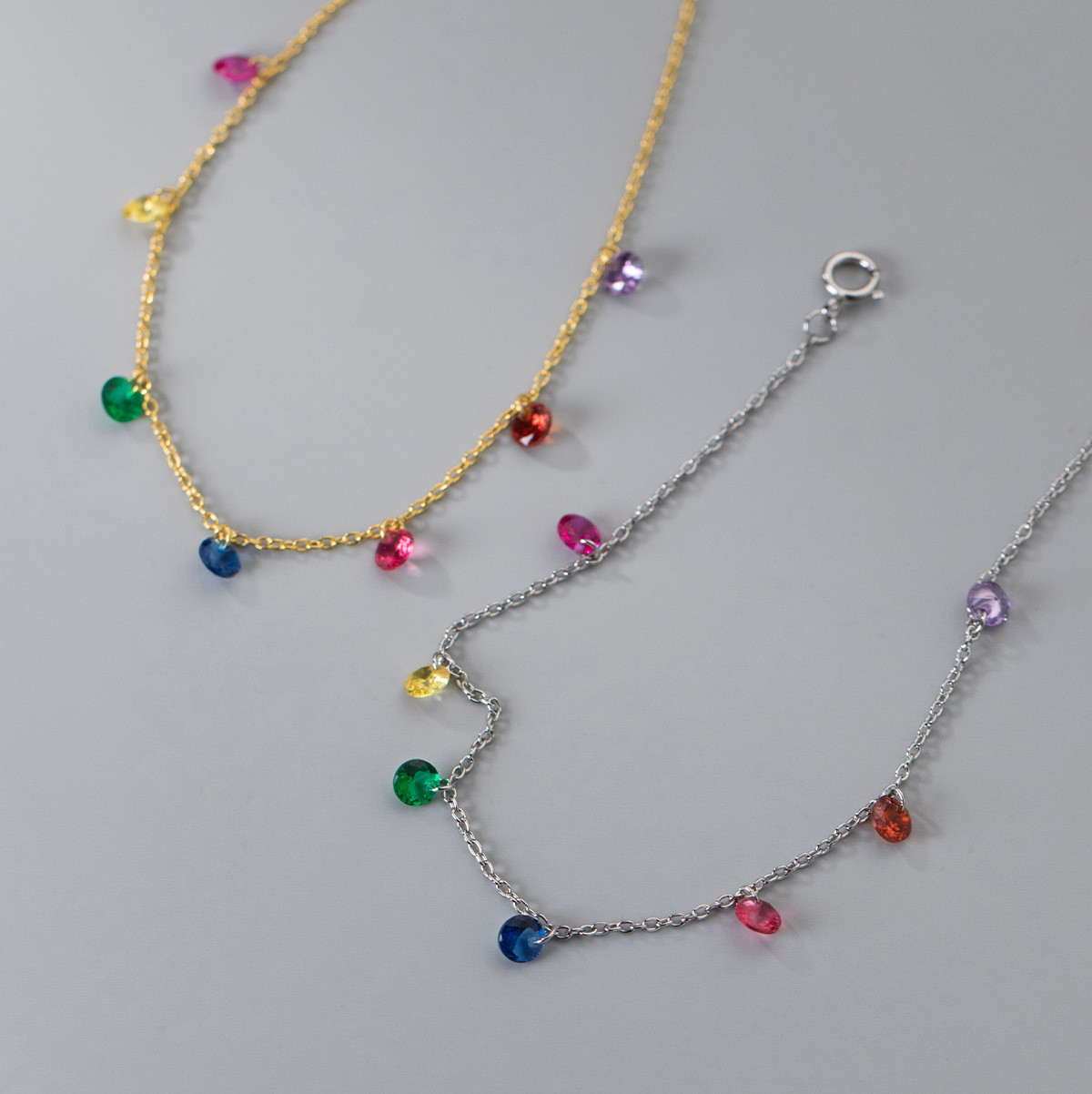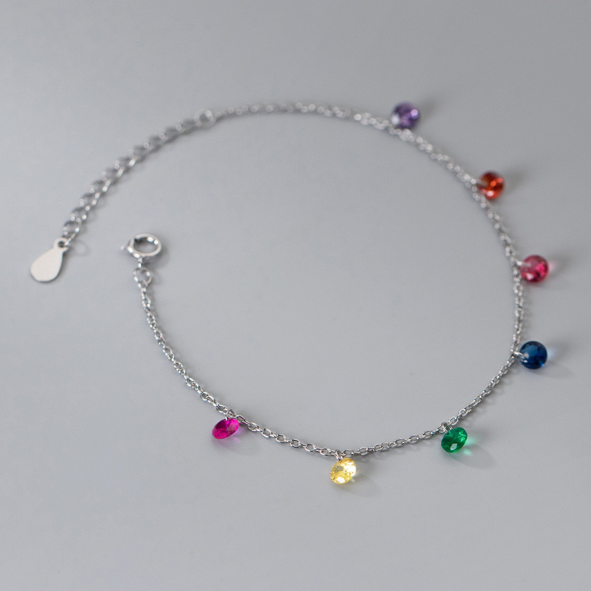 s925 sterling silver simple rhinestone circle gold charm bracelet