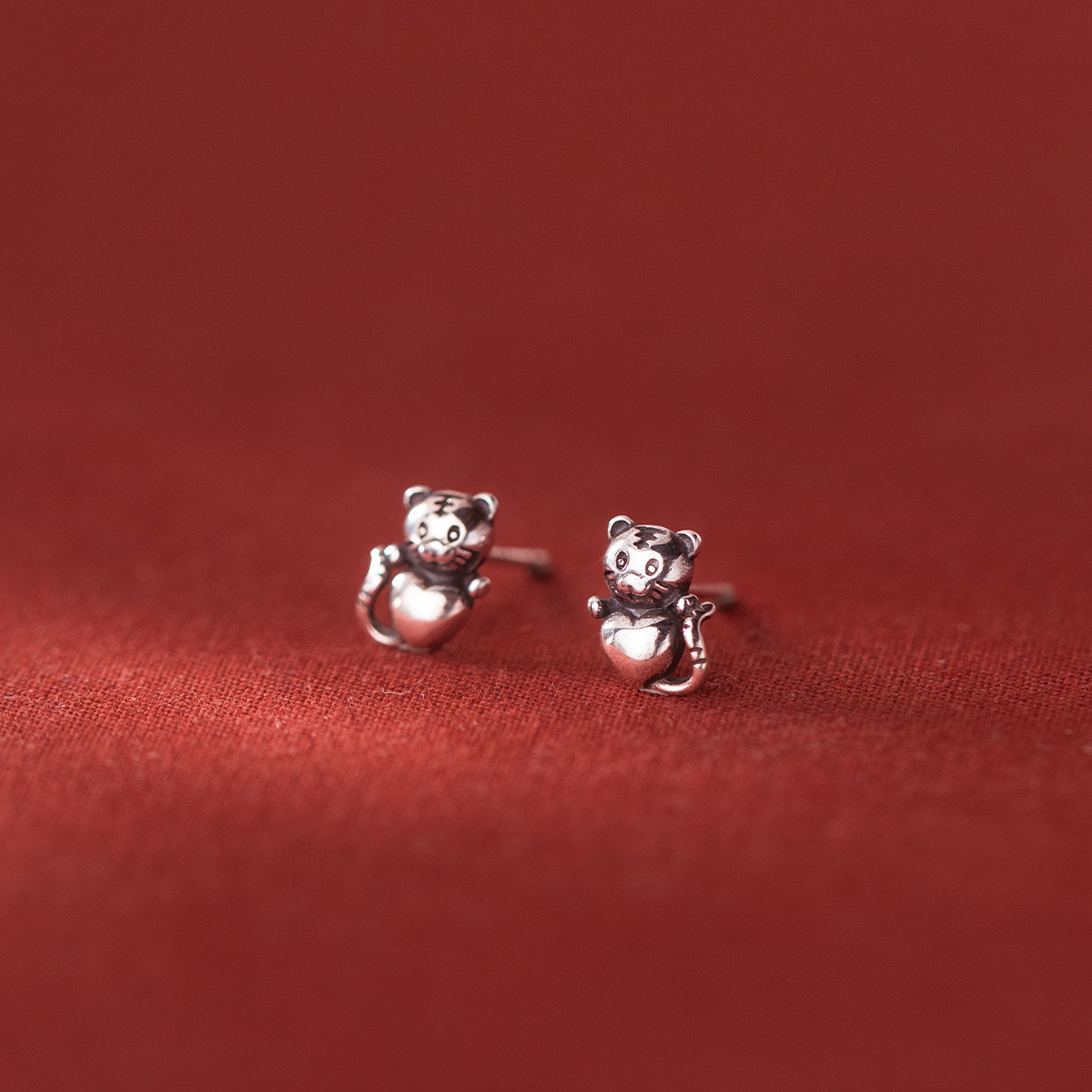 s925 sterling silver simple trendy cute bear chic sweet cuteM earrings