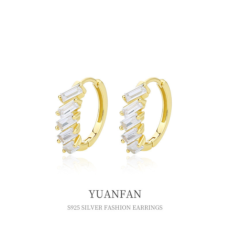 s925 sterling silver cute chic stars sweet simple rhinestone hoop earrings