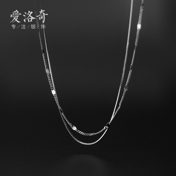 s925 sterling silver doublelayer fashion chic silver asymmetric necklace