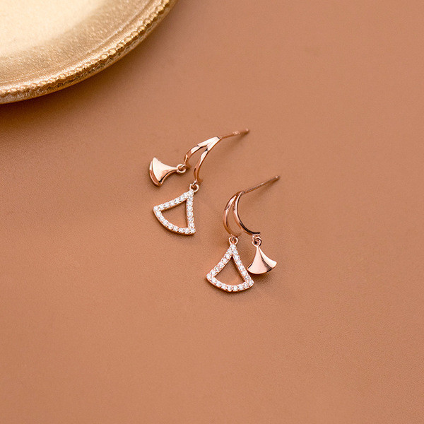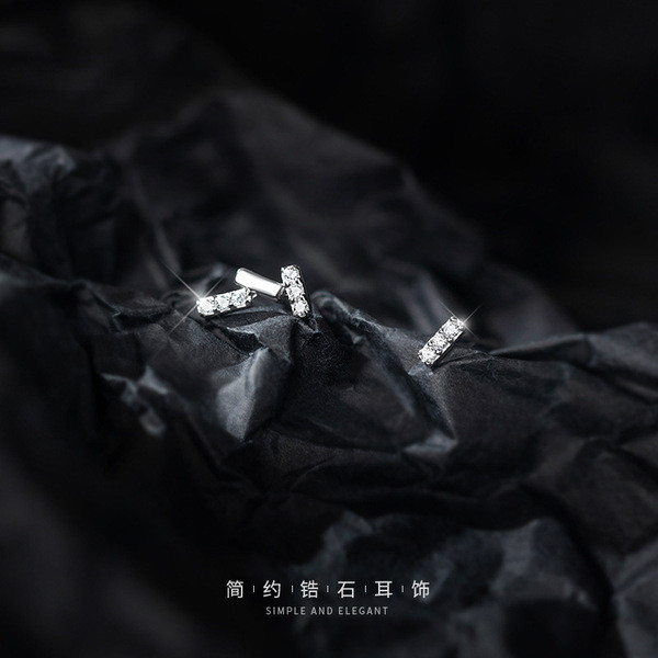 s925 sterling silver silver simple rhinestone asymmetric earrings