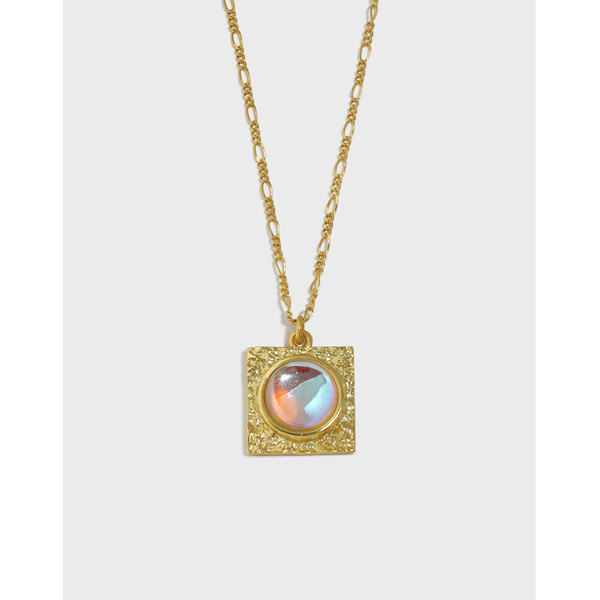 geometric circle moonstone pendant quality s925 sterling silver necklace