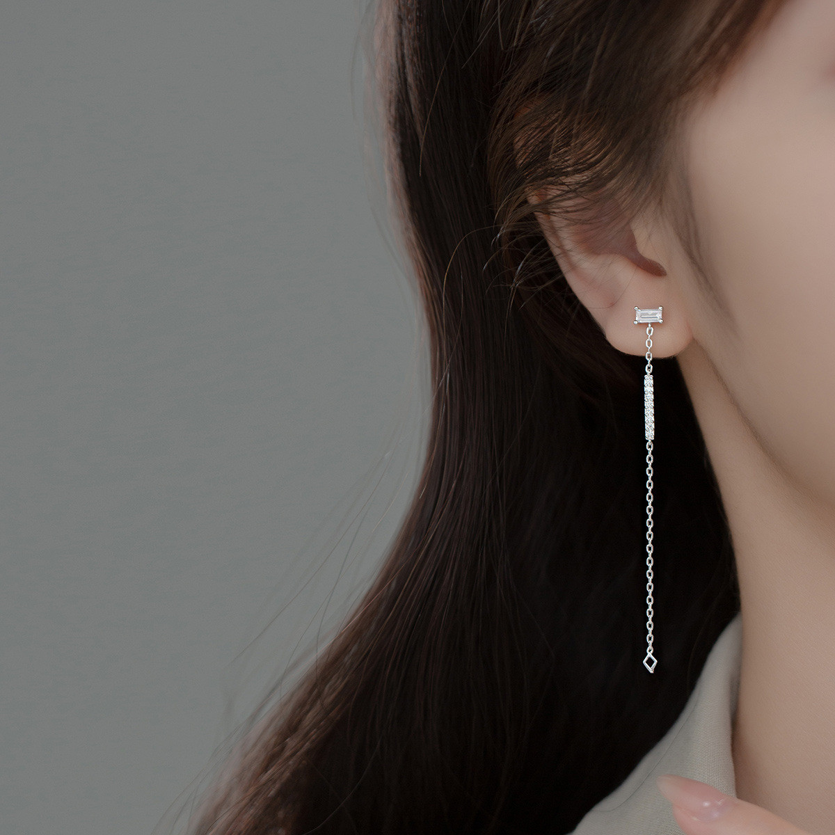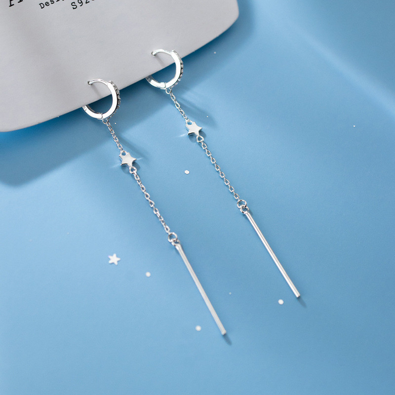 s925 sterling silver stars black rhinestone doublelayer earrings
